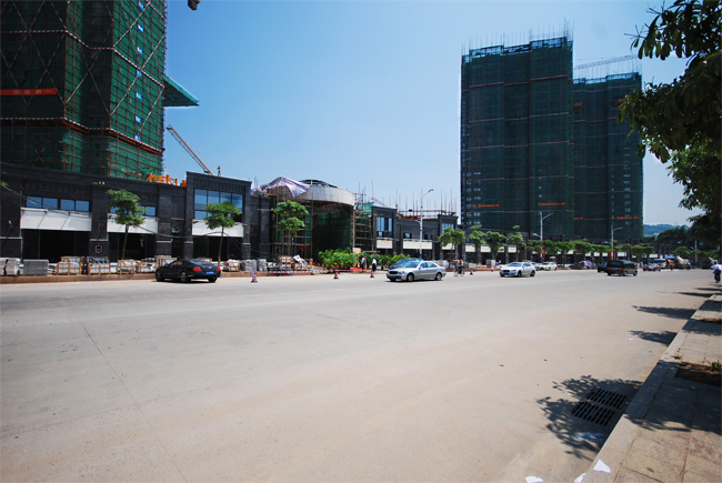 與20天之前相比,最為明顯的變化是項目沿永盛北路一側圍墻已經全部拆除,取而代之的是一長遛即將完工的沿街商鋪。