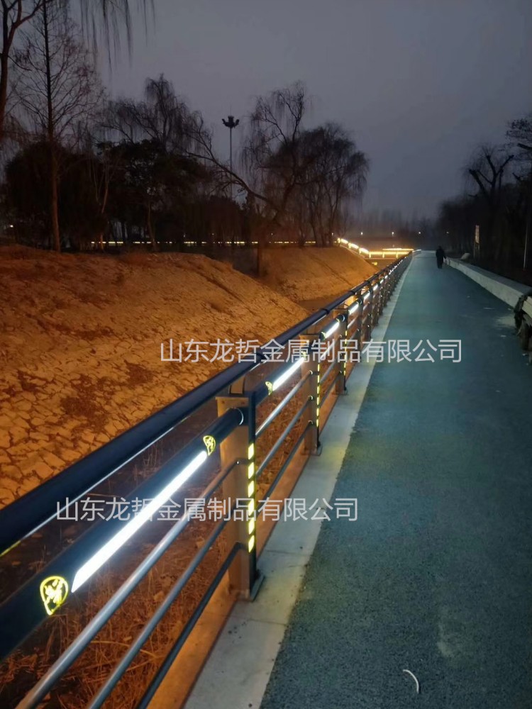 燈光護欄是結(jié)合了城市設(shè)施實用功能和藝術(shù)的可觀賞功能為一體的成功產(chǎn)品,亦可結(jié)合地方文化與特色于一體,實現(xiàn)燈光與護欄的完美結(jié)合。解決了燈具的隱藏問題,立柱和橫梁上設(shè)計的燈光,光度柔和,有冷暖色可選,安裝方便,對人行道照起到很好的輔助作用,用在河道不僅對游人起到了安全警戒和引導(dǎo)功能,外側(cè)燈光剛能更好對周圍景色加以點綴!導(dǎo)功能,外側(cè)燈光剛能更好對周圍景色加以點綴。